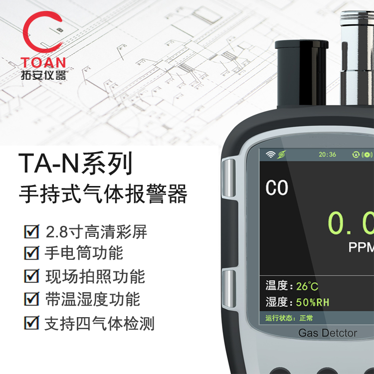 新一代手持式氣體檢測(cè)儀(泵吸+擴(kuò)散)系列,是用于現(xiàn)場(chǎng)檢測(cè)氣體泄漏和其它特殊用途的一款高端手持可移動(dòng)式氣體檢測(cè)儀。該氣體檢測(cè)儀兼容泵吸或擴(kuò)散采樣方式對(duì)氣體濃度進(jìn)行檢測(cè),同時(shí)還具有報(bào)警、現(xiàn)場(chǎng)圖像拍照或攝像、溫濕度檢測(cè)、無線數(shù)據(jù)傳輸、現(xiàn)場(chǎng)多模式顯示、連接拓安服務(wù)器數(shù)據(jù)存儲(chǔ)分析等多種強(qiáng)大功能。是集高科技、物聯(lián)化支持、人性化操作理念、多種技術(shù)資源于一身的全新物聯(lián)網(wǎng)型手持氣體檢測(cè)儀。